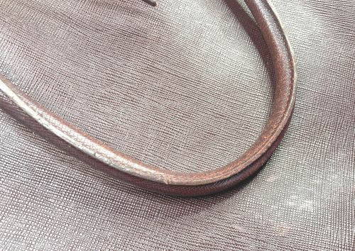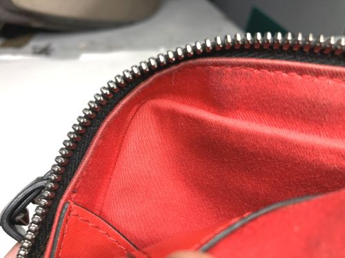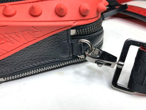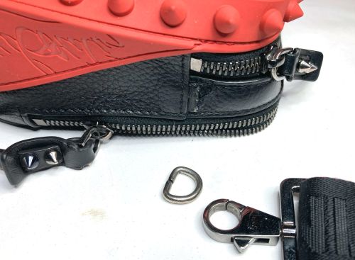 | ルブタン ショルダーバック ストラップ根元修理 本体側ストラップ根元が千切れて外れていました。分解して残存を確認すると合皮の ようでした。丈夫な本革で部品を作り直して取り付けました。もう一方も少し心配です。 |