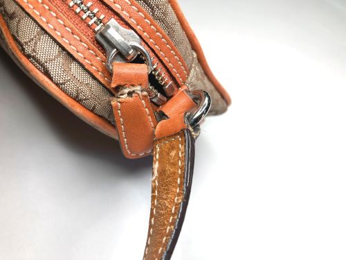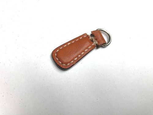 | コーチファスナー引手補修 引手が千切れて糸で辛うじてつながっている状態でした。特殊な色なので当初補修で行う 予定でしたが、縫目から完全に千切れているため、強度を考えて新しい革にて作り直す 事にしました。色合わせに苦労しましたが、違和感なく仕上がったと思います。 |