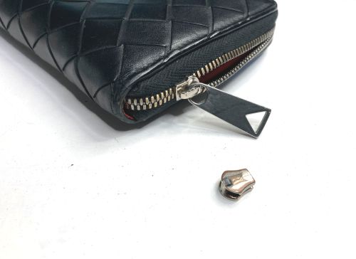 | ボッテガ 財布 スライダー交換 ファスナースライダーのフックが折れて引手が外れていました新しいスライダーと 交換してから後ろ止めをつけてから元に戻しました。ファスナーの端が短いので 作業はしやすいですが、強度的に心配になります。。 |