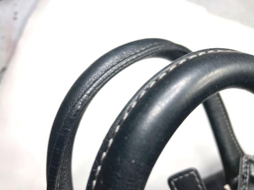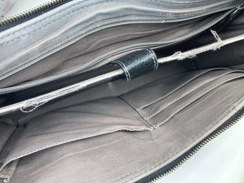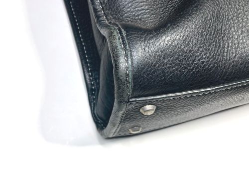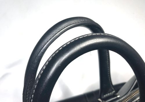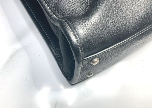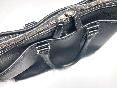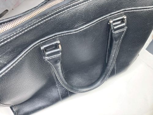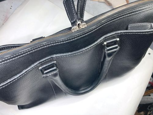 | ビジネスバック 擦り傷、持ち手コバ補修、仕切り補強 全体的な擦り傷は白のステッチに色が入らないように補色、仕切りは本革にて縁取り 縫い込みました。持ち手は写真で見るよりがさ付き感があり、塗膜を載せながら 研磨して仕上げました。コバは少しだけグラインダーで削ってから肉盛りして補色 コーティングしました。 |