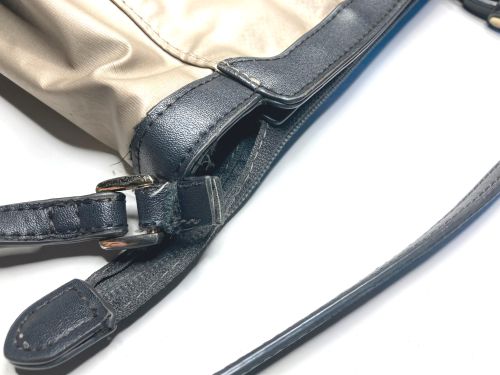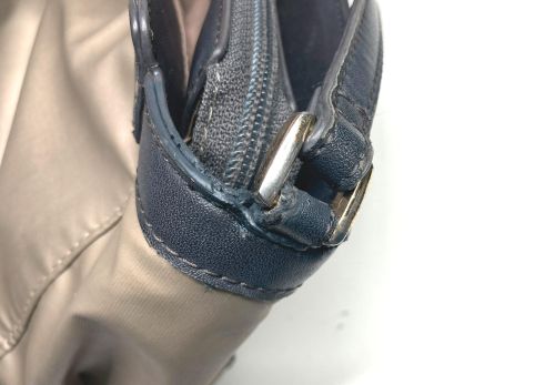 | ショルダーバック ストラップほつれ補修 ストラップの根元がほつれて抜けていました。しかしよく見ると、素材が合皮で縫目から 千切れているようでした。コバをしっかり整えてからやや内側を縫い込んで仕上げました。 |