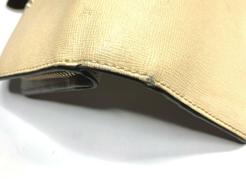 | FURLA 財布 塗膜はがれ補修 コーティングが剥げただけと思っていましたが、どうやらコーティング自体にも色が 入っていたようで、表面全体を補色コーティングしました。曲げ部の割れも補修 しています。 |