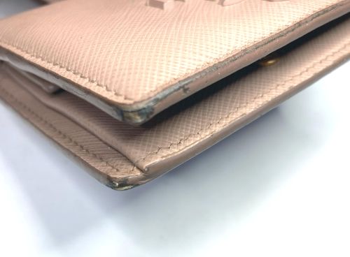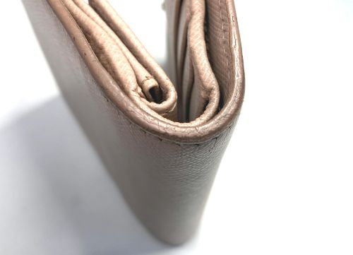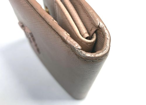 | プラダ 財布 エンブレム色はげ、外周部コバ補修 エンブレムの縁が傷ついて色も剥げていました。メッキではなく塗装なので耐久性には 問題がありますが、硬化剤を多めにした塗料で仕上げました。外周部コバは一旦全て削り 取ってからエマルジョン接着剤で肉盛り成型してから補色コーティングで仕上げました。 |