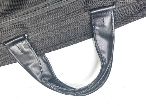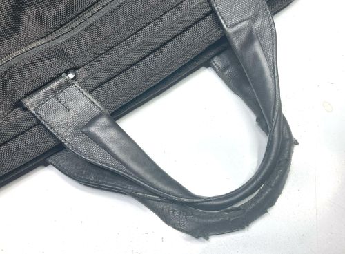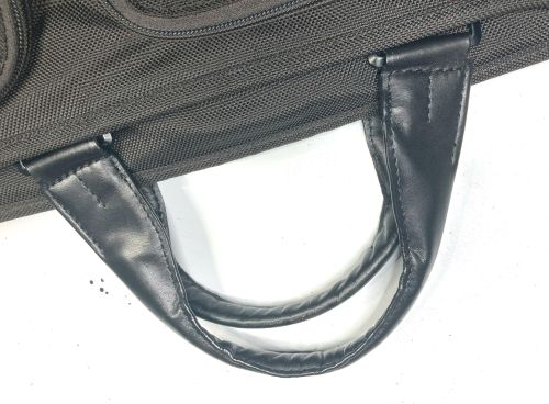 | TUMI バック 持ち手修理 持ち手の片側が破れて革巻きなどの補修が不可能な状態でした。また当初市販品で 互換性のあるものを可がしましたが、形状と取付金具の隙間が小さいので断念し 新たに製作して取り付ける事にしました。また他革部品の色はげも軽く色付しれ おきました。 |