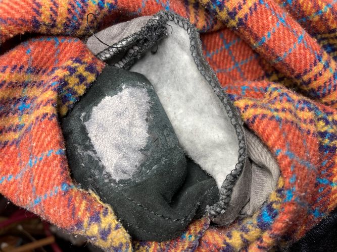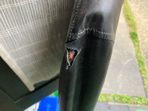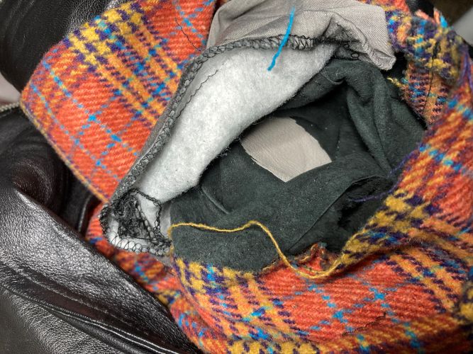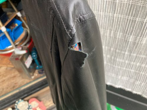 | レザージャケット 破れ補修 左肩が大きく破れていました。大変柔らかい革なので痕跡は残りやすい旨をお伝えして 施工しました。裏地を開いて柔らかい革を接着してから裂け目に薄く接着剤を塗ってから 型押しして固め、補色、マットコーティングyをかけました。裏から貼った柔らかい 革の輪郭が浮き出ていたので、グラインダーで出来るだけ削ってから、裏地を再縫製して 仕上げました。 |