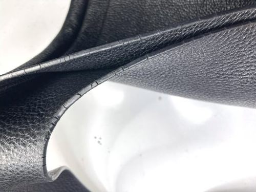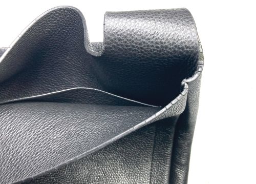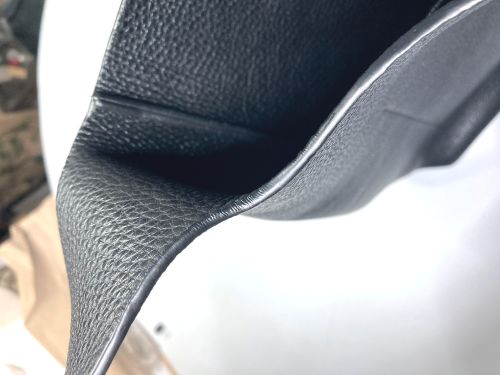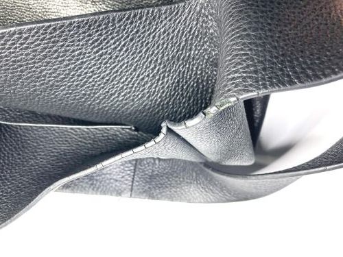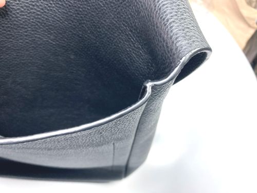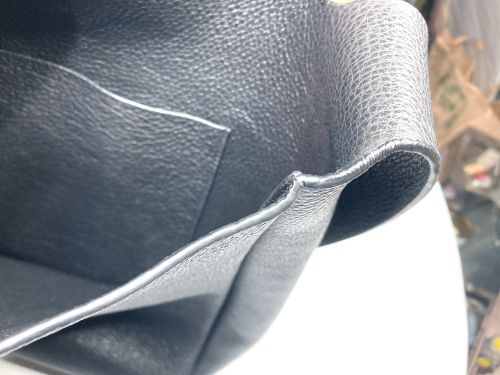 | トートバック コバひび割れ補修 シンプルな柔らかいバックですが、柔らかいがゆえに、曲げ、延び縮などで分部的に 割れやすく、補修してもしばらくすると割れる可能性がある旨をお伝えしてから補修 しました。本来は持ち手付近は薄い革を巻いた方が良いのですが、今回は見た目を 変えたくない意向があり、単純に木庭補修としました。ひび割れの上から補修しても 浮き出てくるため、ひび割れが深い部分は一旦グラインダーで削ってから補修しています。 |