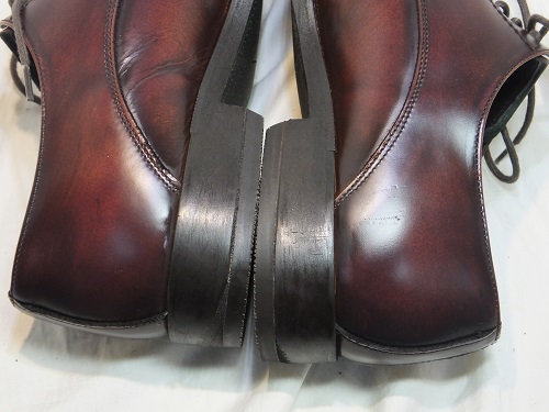 | TAKEO KIKUCHI 紳士靴 こすれ傷補修 かかと交換 つま先の傷と全体的な色はげを補修。かかとは交換しています。 グラデーション仕上げをしています。 |