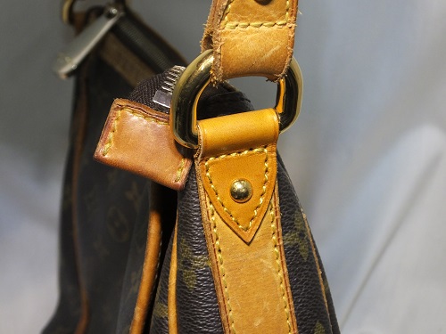| ヴィトン ショルダーバック 肩紐 修理 肩紐本体側付け根がちぎれそうになっていました。新しい革で部品を作り替えました。 内側に補強用テープを張ってあります。 |