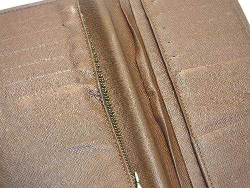 | ヴィトン 財布 水濡れ補修 水にぬれて歪み、完全に乾いてからの補修でした。元々ヴィトンは内側と外側の素材の伸び率 が異なり何もなくても反り返りなどの現象が出るためかなり難航しました。結局分解して内部に芯材を入れて接着プレス、外側の素材に合わせて内側をカットし、他のパーツもそれぞれ型押しして表面の凹凸を矯正してから組み立て縫製して最後にコバを仕上げました。 |