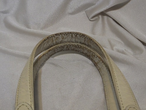 | 婦人 ハンドバック 持ち手ひび割れ、黒ずみリペア |