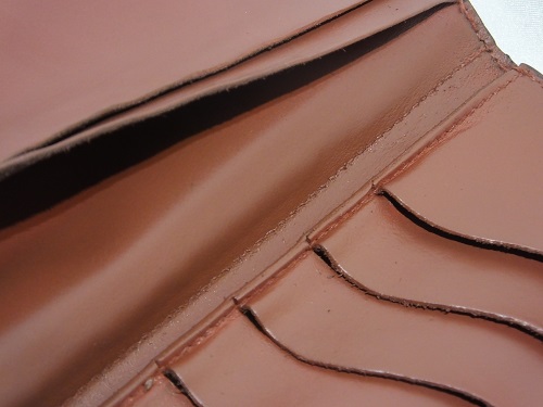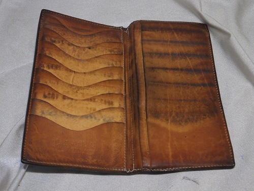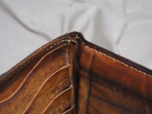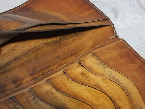 | IL BISONTE 財布 ファスナー脱線修理、内側黒ずみカラーチェンジ、折り目ほつれ修理 |