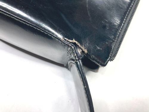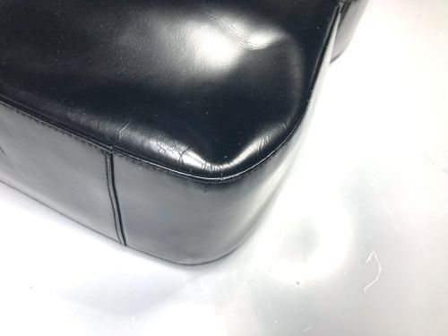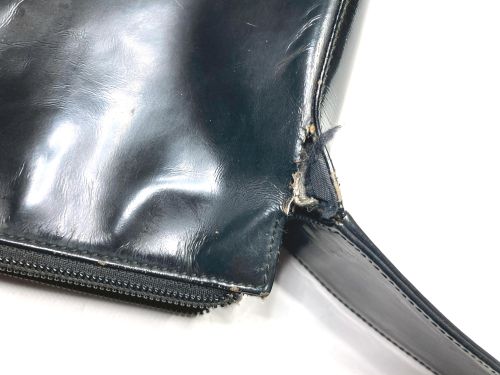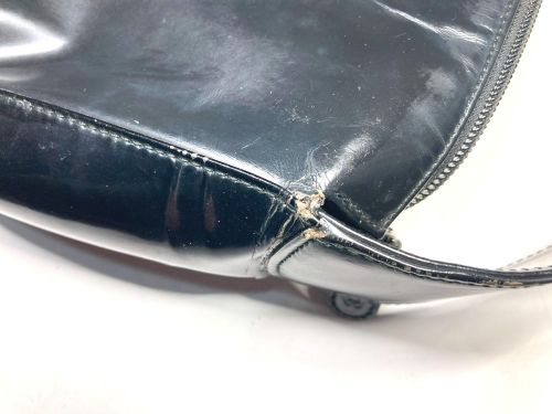 | グッチ バック 補修 当初は持ち手付け根の亀裂の補修でしたが、持ち手自体も芯材が変形してよれて戻らない 状態でした。分解して硬化した芯材を除去してから柔らかめの芯材を貼って再縫製しま した。また、内袋も劣化してひょうひが剝れていました。当初ご依頼はありませんでし たが、持ち手のみ補修しても結果的に使わない可能性があるので内袋も劣化の可能性が ない、ナイロン生地にて作り直しました。その他底角のこすれ傷、正面のえぐれた傷も 補修し、最後に全体を補色コーティングして仕上げました。 |