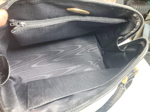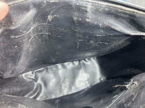 | クロコ バック 内袋交換 内袋の合皮が劣化して表皮が剝れてきていました。分解してナイロン生地に交換しまし たが、本体との接続部(輪郭)は縫い込みではなく接着でした。慎重に剥がしていまし たが、ジャバラ部は強固に接着してあり千切れてしまう箇所もありました。その部分は 事前に補修してから内張を交換しポイント毎に縫製してから接着しました。 |