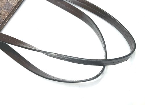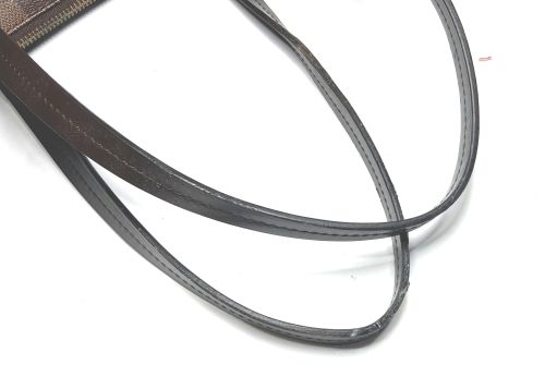 | ヴィトン バック 持ち手コバ 補修 持ち手のコバが部分的に溶けたように劣化していました。グラインダーで8割り程度削り 取ってから、再度肉盛り成型補色コーティングをかけました。 |