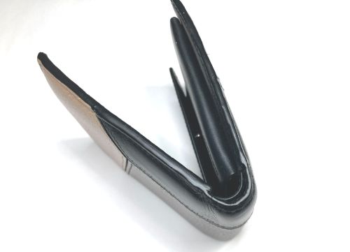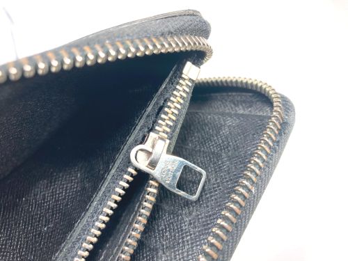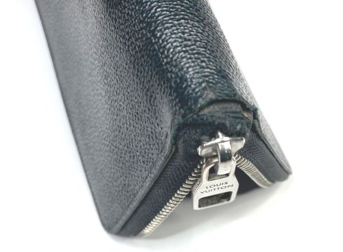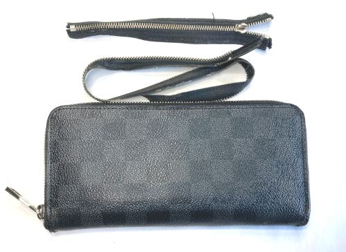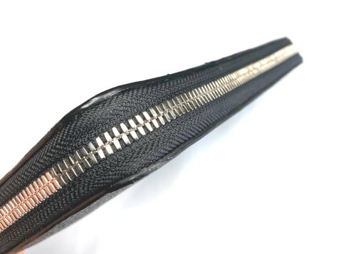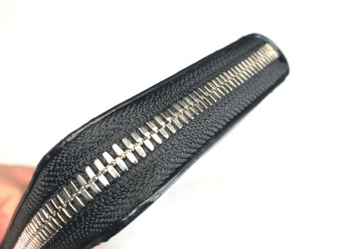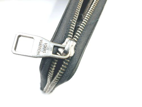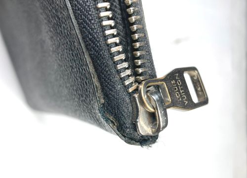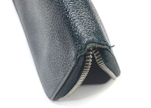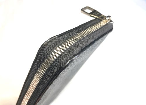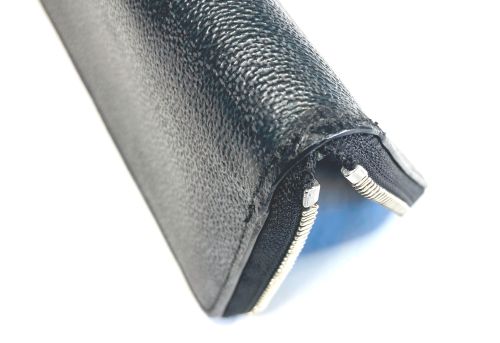 | ヴィトン財布 ファスナー交換、曲げ部補修 当初内側のみのファスナー交換依頼でしたが、外側のファスナーも布部が破れていたので 確認後交換作業に入りました。曲げ部も大きく浸食していたので、内側に補強の革を入れ 込んでからポリウレタン接着剤を充填、硬化後補色し、再縫製しました。 |