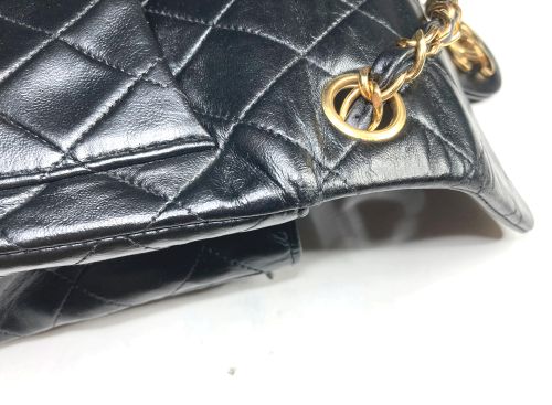 | シャネル バック 全体補修 外周部を中心に激しくすれてがさがさ状態でした。下地処理剤を刷毛で何度も塗布してから 研磨を滑らかになるまで繰り返してから、全体を補色コーティングしました。その際外せる 部品は外してから行っています。 |