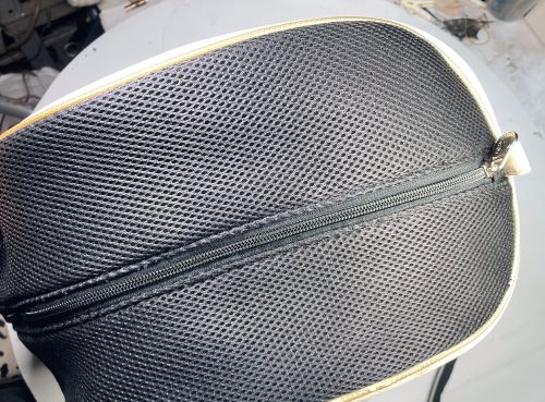 | キャディーバック ファスナー交換 コールファスナーが破損し使用できない状態でした。また、シルバー調のコールファスナーで、在庫のある黒のファスナーでとの了承を絵て交換しました。 |
