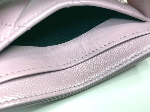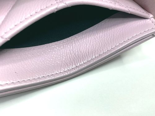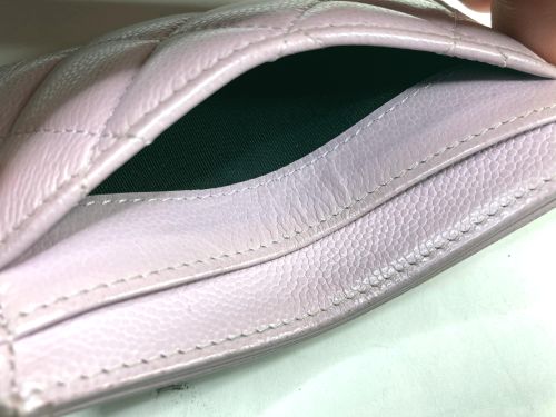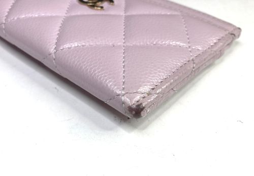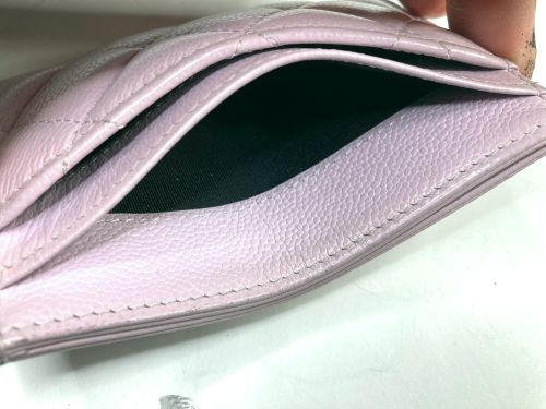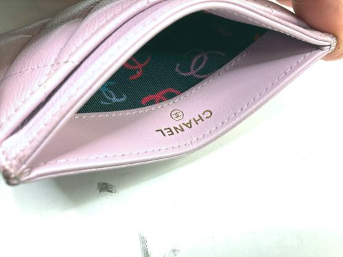 | シャネル カードケース 色はげ補修 角など外周部の所々に色剥げがあり、表面も色褪せで黄ばんだ感じがありました。一番 内側のロゴのあるポケットが一番状態が良いので、その部分を参考に補色コーティングを かけました。 |