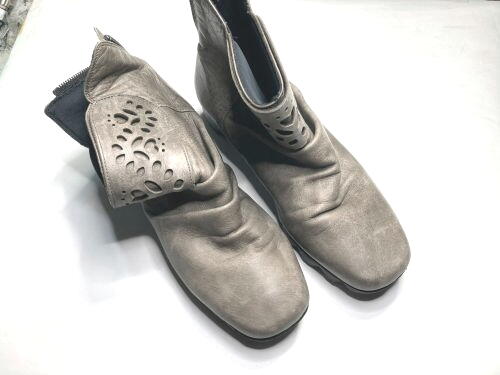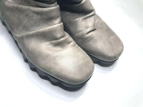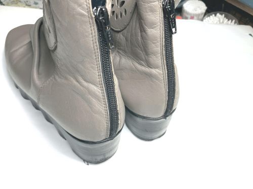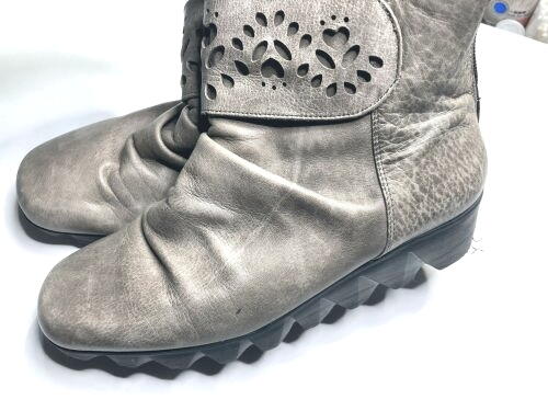 | NINE DI ブーツバック 全体補色 元の質感が逆に汚く見えていました。質感が変わることをご了承の上全体補色をしました。 |