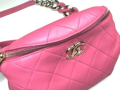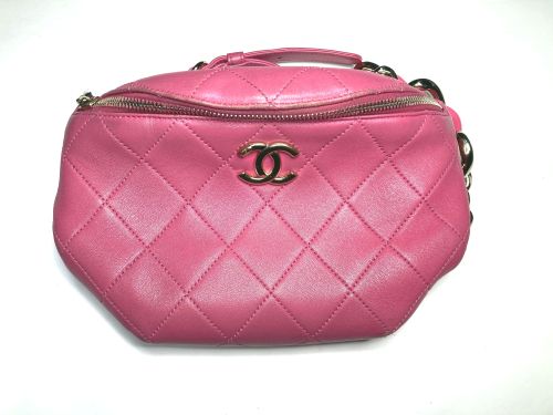 | シャネル バック 色あせ補修 色褪せとジーンズからの色移り等で全体的に黒ずんでいました。蛍光ピンクなのでかなり 難しい調色になりました。補色後コーティングをして仕上がりました。 |