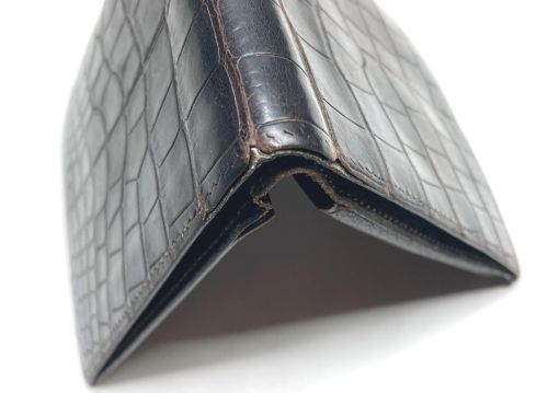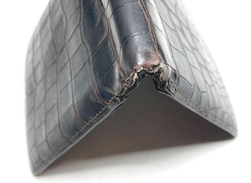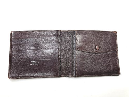 | エルメス財布 破れ色補修 表面の色褪せ色はげや曲げ部の破れほつれの補修になります。曲げ部は分解して下地に 薄い革を入れ込み段差をポリウレタン接着剤で固めてから再縫製後、表面のみ補色、内側はホックの頭等、色はげしているところのみ補色しました。小銭入れはクリーニングのみで 仕上ました。 |