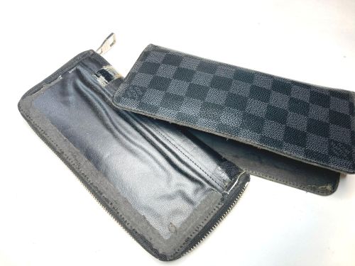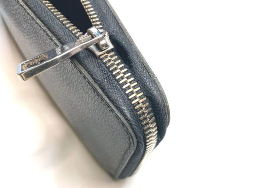 | ヴィトン 財布 ファスナー交換 ファスナー布部が大きく破れていました。分解して新しいファスナーに交換して引手のみ 移設しました。分解した際に曲げ部の亀裂を補修しています。 |