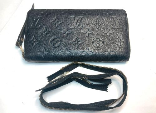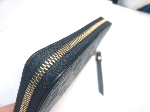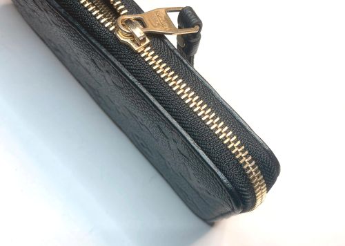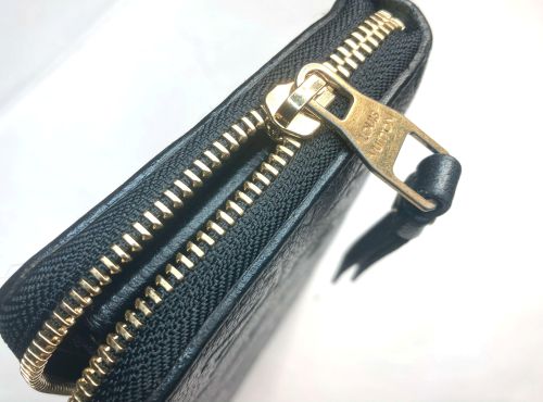 | ヴィトン 財布 ファスナー交換 ファスナーが破れているわけではありませんが、破れる兆候があり、シムのメッキも酸化 してさびているように見えていました。また閉まり切らないじょうたいでした。このような 状態の場合は判断が迷います。スライダーの交換とシムの磨きでも使用出来る状態になり ますが、今回はファスナー全体の交換になりました。 |
