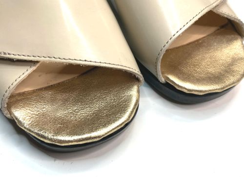 | CONFORTOサンダル つま先 補修 つま先の巻革(合皮)のめくれを本革にて巻替えました。神輿の補修用でたまたま在庫 していました。 |