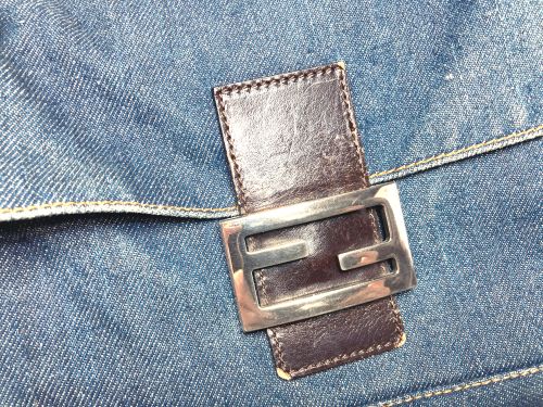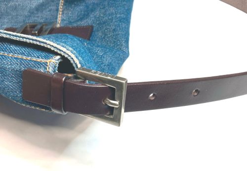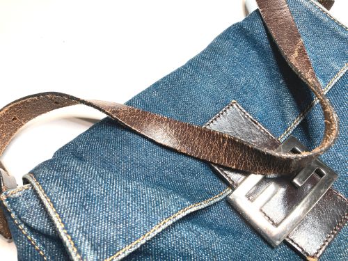 | フェンディ 布バック 持ち手交換 色はげ補修 持ち手がひび割れしていました。似た風合いの革ベルトに止穴を6箇所開けて、他の パーツの色はげを補修してからコーティングをかけました。 |